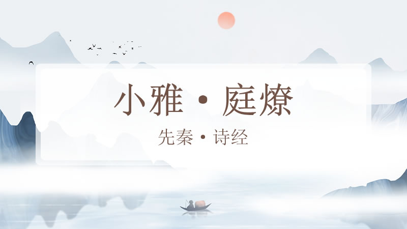 《小雅·庭燎》是中国古代第一部诗歌总集《诗经》中的一首诗,这是记述周王早晨视朝前与报时官对话的诗,描写宫廷早朝景象,赞美君王勤于朝政。全诗三章,每章五句,用问答体,通过对话透露对话人的性格。此诗由远及近,层次清楚,细节感人。有问有答,如见其人;有光有声,如临其境。