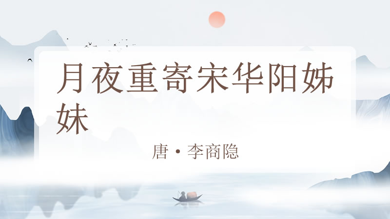 唐文宗太和八年(834),长安城发生了震撼朝野的“甘露之变”,李商隐也受其影响,在彷徨中决定到玉阳山去“学仙”,约为四年,这时结识了女道士宋华阳姊妹,也可能因此产生了恋情。《月夜重寄宋华阳姊妹》诗就写下了当时这种初恋的情感。诗人早已向宋华阳姊妹发出过自己情爱的信息,但始终未收到宋氏姊妹返回消息,当然诗人仍存有幻想,实现自己的情感愿望,于是在“月夜”重寄自己的相思,因而创作了《月夜重寄宋华阳姊妹》这首诗。
