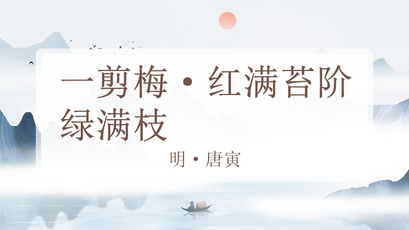 《一剪梅·红满苔阶绿满枝》是明代著名画家、书法家、诗人唐寅的词作,此词前两节先以鲜明的色彩描绘出一幅生机勃勃的自然画面,再传神地摹写出离别的哀愁、思念的痛苦以及离别后的孤独感;后两节进一步表达了对离别后相思之情的无奈和感慨,这种情感是极其幽微、难以言表的。整首词情思哀婉,写景、遣词、造句无不发自情语,感人至深。