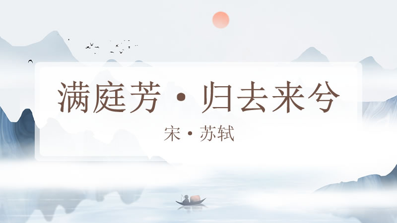 《满庭芳·归去来兮》此词作于宋神宗元丰八年(1085)二月苏轼在由南都(今河南商丘)返回阳羡(今江苏宜兴)途中。元丰七年(1084),苏轼被授检校尚书水部员外郎、汝州团练副使,奉诏离开黄州赴汝州就任。苏轼对由谪居黄州改为谪居汝州,内心是充满矛盾的。他在给王文甫的信中说,他想要求依旧居住黄州,但想到罪名很大而惩处很轻,皇帝的恩典深厚,不得不去汝州。但是在赴汝州的途中,他又动摇了。他向神宗皇帝上书,说他在阳羡有田产,要求回阳羡居住。神宗皇帝很快就批准了,但诏书下达时,苏轼已经到了南都。于是他立即调转船头,返回阳羡,并写了这首词。