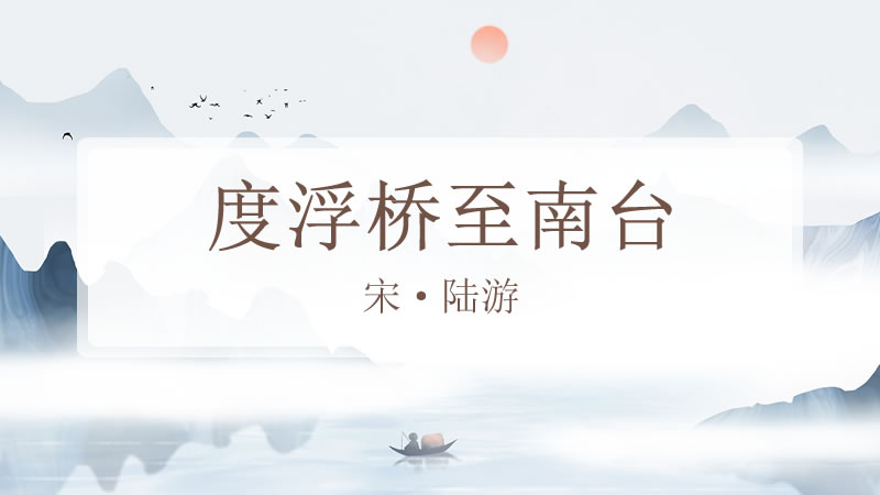 《度浮桥至南台》是宋代爱国诗人陆游的七言律诗,诗人病后登临南台,在跃跃欲出、急于欣赏外面风景的心情的驱使下,他缓步前行,临江眺望。在诗中表现了浮桥的伟丽、南台的雄浑,借江山来抒发心中的万千豪情。全诗意境阔大豪迈,于晓畅流动中显示了豪壮瑰伟的风格。