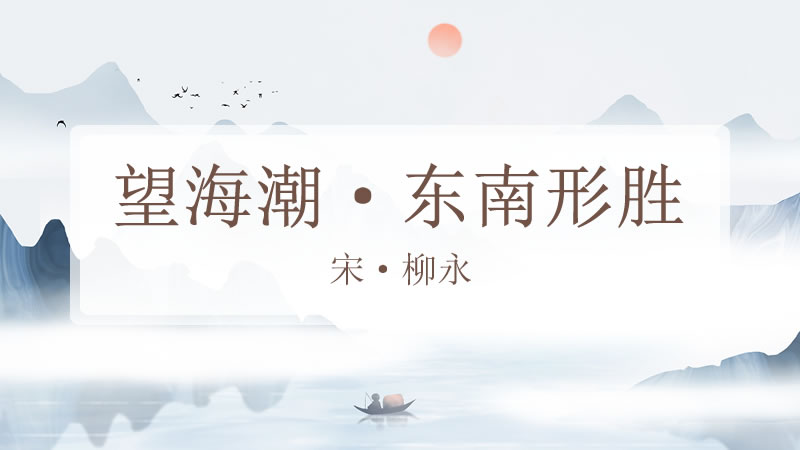《望海潮·东南形胜》是宋代词人柳永创作的一首词,此词主要描写杭州的富庶与美丽。上片描写杭州的自然风光和都市的繁华,下片写西湖,展现杭州人民和平宁静的生活景象。全词以点带面,明暗交叉,铺叙晓畅,形容得体,一反柳永惯常的风格,以大开大阖、波澜起伏的笔法,浓墨重彩地铺叙展现了杭州的繁荣、壮丽景象。此词慢声长调和所抒之情起伏相应,音律协调,情致婉转,是柳永的一首传世佳作。